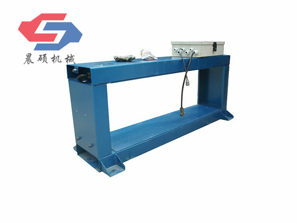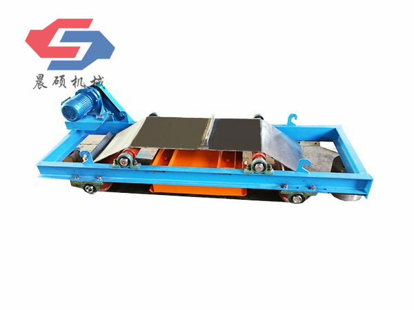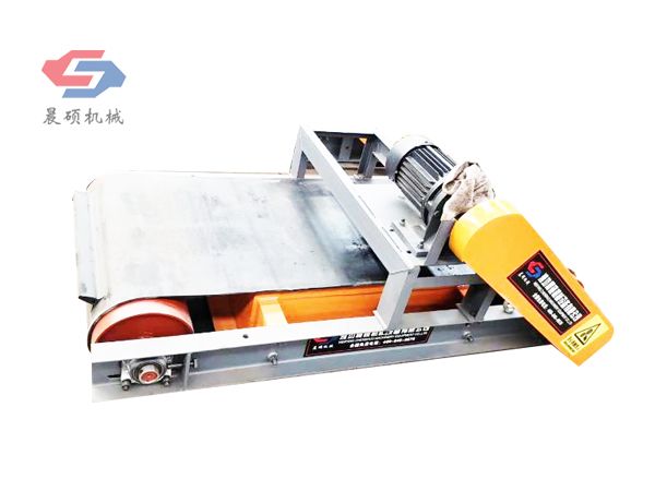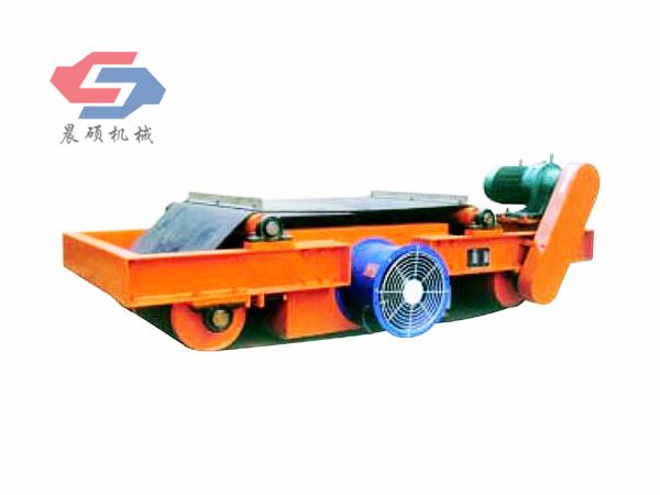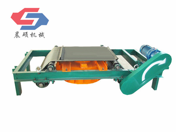 電磁除鐵器的基礎上增加了驅(qū)動電機、滾筒、帶刮板的缷鐵膠帶等組成的缷鐵機構。在工作過程